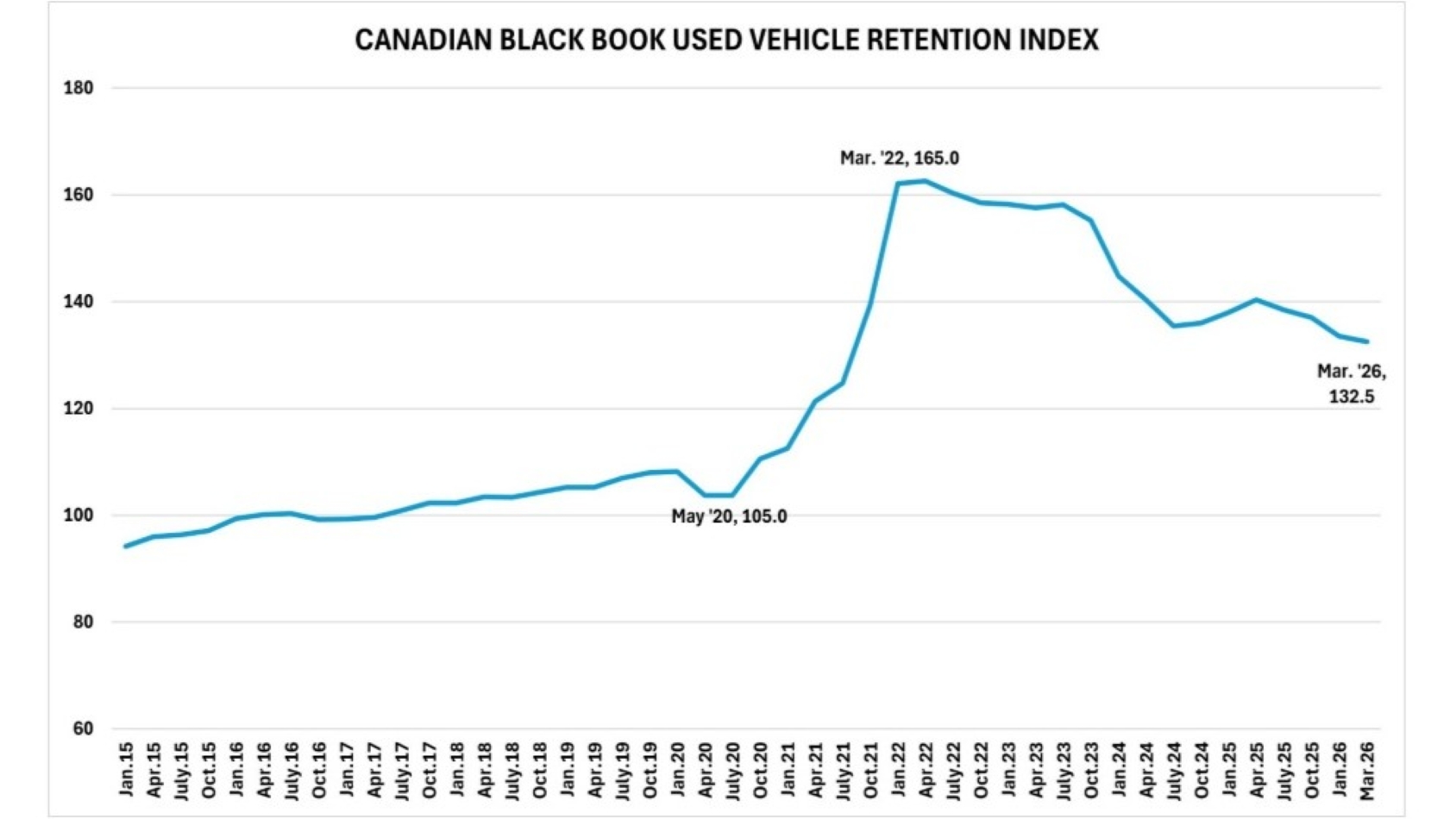 Canadian Black Book’s Used Vehicle Retention Index for March showed birds singing and flowers blooming in the form of a slight month-over-month increase to 132.5, up 0.3 points from February, a small bump that’s a clear sign of the seasonal market in action.