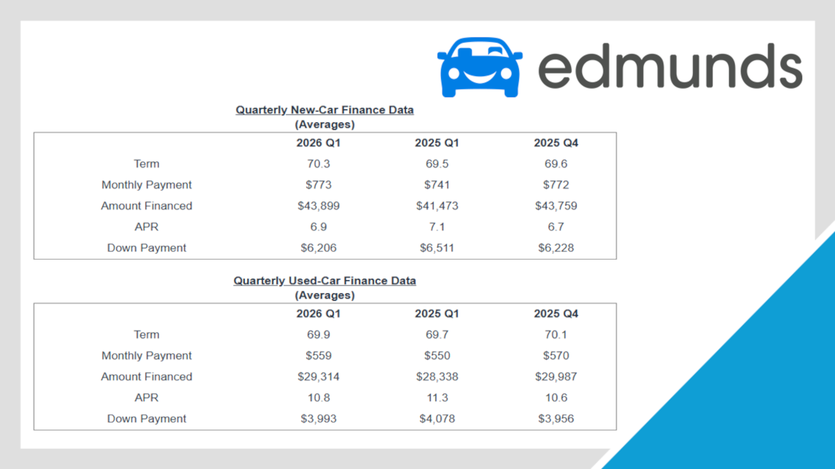 “Q1 financing data shows that car buyers are getting creative just to keep their purchases within reach,” said Edmunds head of insights Jessica Caldwell, who is among the recipients of the 2026 Automotive Intelligence Awards.