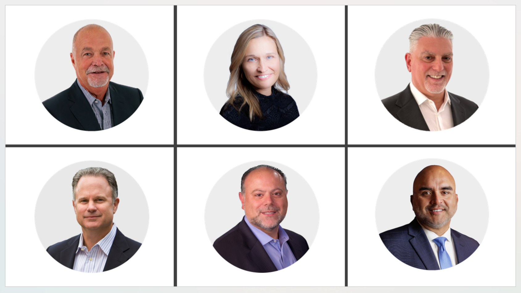 Pictured in the top row from left are Tony Wanderon, Christina Schrank and Rico Carroccio. In the bottom row from left are John Lee, David DeCredico and Mark Cortez. Images courtesy of APCO Holdings.