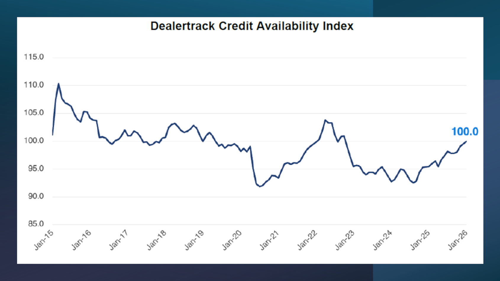 “Overall, the January Dealertrack Credit Availability Index reflected mixed auto credit conditions,” Gregory said. “While the index held steady at 100.0, individual metrics told a more complex story. Some measures continued to loosen, with increased subprime lending and longer loan terms offering expanded opportunities for certain borrowers.