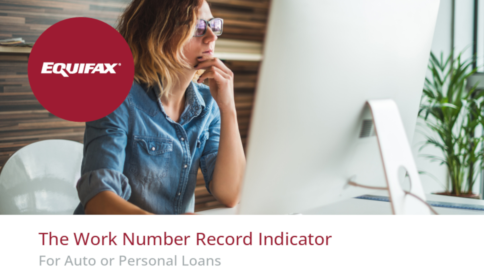 Last week, Equifax launched The Work Number Record Indicator that can deliver income and employment insights from The Work Number alongside the Equifax consumer credit report at the start of the auto or personal loan application process.